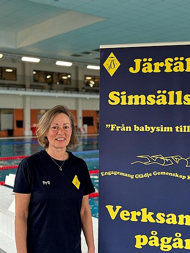 Hon heter Eva Kalström och kommer tillsammans med Malin Bengtsson att jobba med vår viktiga och växande breddverksamhet in Järfälla Simsällskap. Eva kommer att ansvara för vår Sim & Lek verksamhet som också är en viktig del i att öka simkunnigheten i Järfälla Kommun och Sverige.