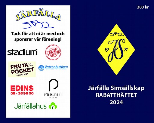 Ett Rabatthäfte kostar 200 kr, (varav 100 kr går direkt till Järfälla Simsällskap).